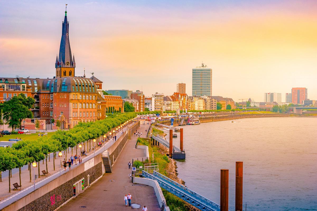 The beautiful city of Dusseldorf is situated on the banks of the Rhine River. The city is very close to the Ruhr District and Cologne. It is the capital and second largest city of the state of North Rhine Westphalia. The city of Düsseldorf is named after the River of Düssel, which is another river flowing into the Rhine. Built on the banks of the Rhine, Düsseldorf is a significant fair and fashion city in Germany. Düsseldorf is known as the Paris of Germany because of the similarities between them. It is the seventh most populous city in the country with more than 700.000 inhabitants. The city is also one of the most important international financial centres in Europe, home to many major companies.